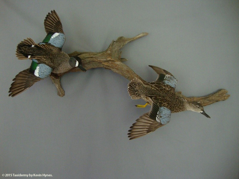 | Flying Blue Wing Teal mounted for John Vaeth |