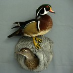 | Wood Duck pair on Log mounted for Eugene Bordelon |